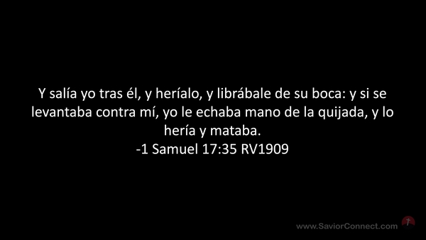 Y salía yo tras él, y heríalo, y librábale de su boca: y si se levantaba contra mí, yo le echaba mano de la quijada, y lo hería y mataba. -1 Samuel 17:35 RV1909