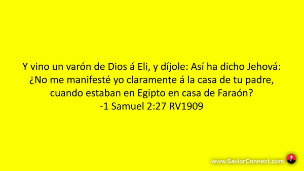 Y vino un varón de Dios á Eli, y díjole: Así ha dicho Jehová: ¿No me manifesté yo claramente á la casa de tu padre, cuando estaban en Egipto en casa de Faraón? -1 Samuel 2:27 RV1909