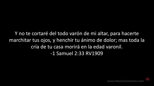 Y no te cortaré del todo varón de mi altar, para hacerte marchitar tus ojos, y henchir tu ánimo de dolor; mas toda la cría de tu casa morirá en la edad varonil. -1 Samuel 2:33 RV1909
