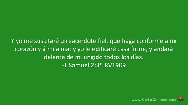 Y yo me suscitaré un sacerdote fiel, que haga conforme á mi corazón y á mi alma; y yo le edificaré casa firme, y andará delante de mi ungido todos los días. -1 Samuel 2:35 RV1909