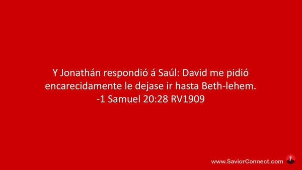 Y Jonathán respondió á Saúl: David me pidió encarecidamente le dejase ir hasta Beth-lehem. -1 Samuel 20:28 RV1909