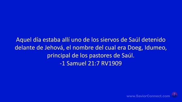 Aquel día estaba allí uno de los siervos de Saúl detenido delante de Jehová, el nombre del cual era Doeg, Idumeo, principal de los pastores de Saúl. -1 Samuel 21:7 RV1909