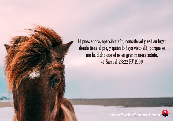 Id pues ahora, apercibid aún, considerad y ved su lugar donde tiene el pie, y quién lo haya visto allí; porque se me ha dicho que él es en gran manera astuto. -1 Samuel 23:22 RV1909