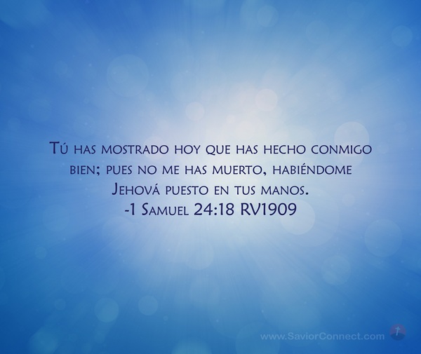 Tú has mostrado hoy que has hecho conmigo bien; pues no me has muerto, habiéndome Jehová puesto en tus manos. -1 Samuel 24:18 RV1909