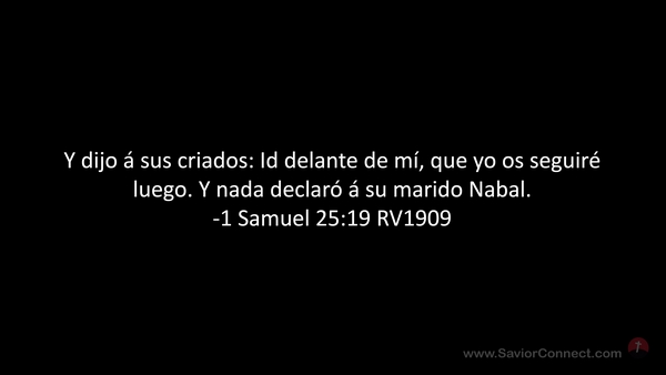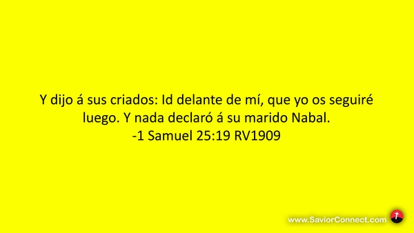 Y dijo á sus criados: Id delante de mí, que yo os seguiré luego. Y nada declaró á su marido Nabal. -1 Samuel 25:19 RV1909