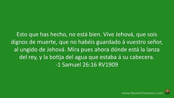 Esto que has hecho, no está bien. Vive Jehová, que sois dignos de muerte, que no habéis guardado á vuestro señor, al ungido de Jehová. Mira pues ahora dónde está la lanza del rey, y la botija del agua que estaba á su cabecera. -1 Samuel 26:16 RV1909