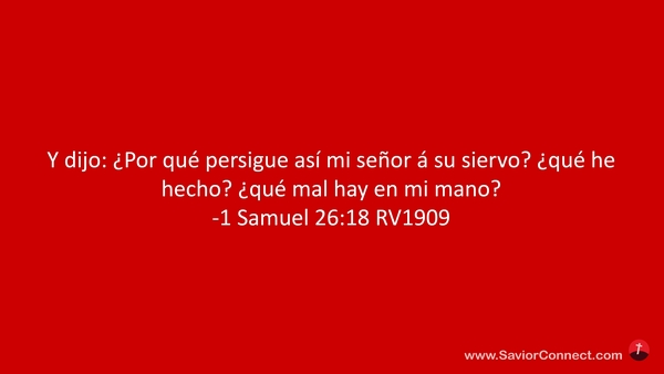 Y dijo: ¿Por qué persigue así mi señor á su siervo? ¿qué he hecho? ¿qué mal hay en mi mano? -1 Samuel 26:18 RV1909