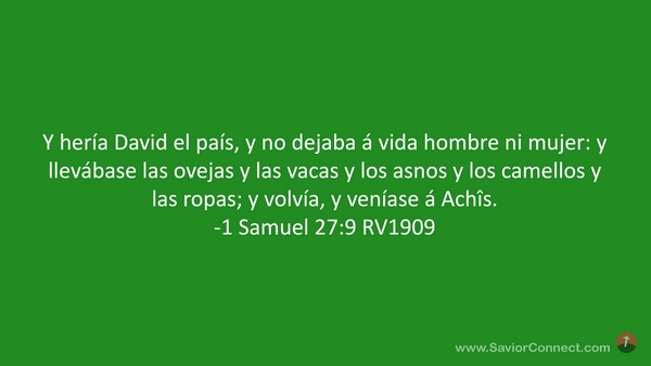 Y hería David el país, y no dejaba á vida hombre ni mujer: y llevábase las ovejas y las vacas y los asnos y los camellos y las ropas; y volvía, y veníase á Achîs. -1 Samuel 27:9 RV1909
