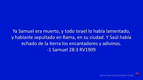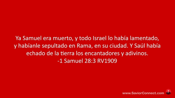 Ya Samuel era muerto, y todo Israel lo había lamentado, y habíanle sepultado en Rama, en su ciudad. Y Saúl había echado de la tierra los encantadores y adivinos. -1 Samuel 28:3 RV1909