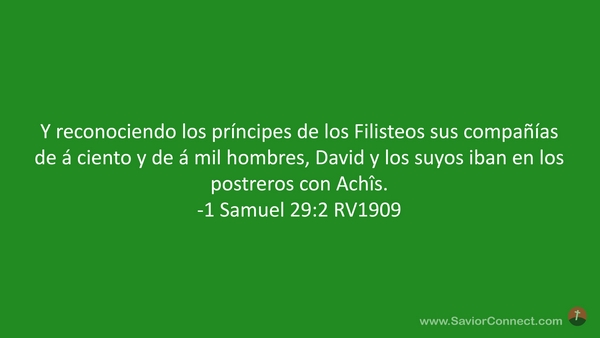 Y reconociendo los príncipes de los Filisteos sus compañías de á ciento y de á mil hombres, David y los suyos iban en los postreros con Achîs. -1 Samuel 29:2 RV1909