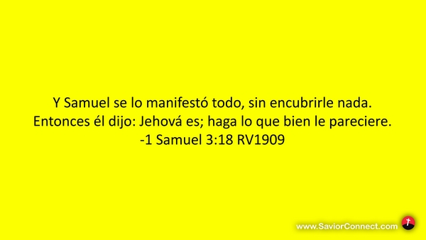 Y Samuel se lo manifestó todo, sin encubrirle nada. Entonces él dijo: Jehová es; haga lo que bien le pareciere. -1 Samuel 3:18 RV1909