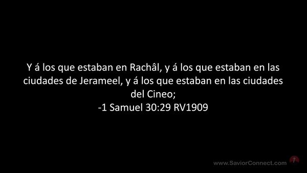 Y á los que estaban en Rachâl, y á los que estaban en las ciudades de Jerameel, y á los que estaban en las ciudades del Cineo; -1 Samuel 30:29 RV1909