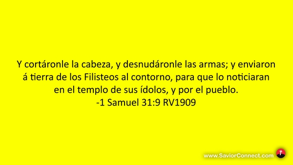 Y cortáronle la cabeza, y desnudáronle las armas; y enviaron á tierra de los Filisteos al contorno, para que lo noticiaran en el templo de sus ídolos, y por el pueblo. -1 Samuel 31:9 RV1909