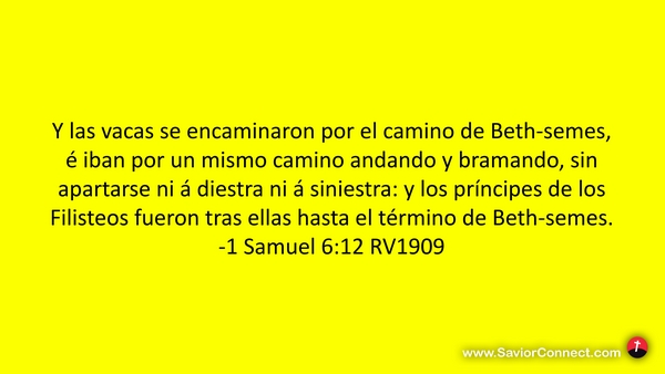 Y las vacas se encaminaron por el camino de Beth-semes, é iban por un mismo camino andando y bramando, sin apartarse ni á diestra ni á siniestra: y los príncipes de los Filisteos fueron tras ellas hasta el término de Beth-semes. -1 Samuel 6:12 RV1909