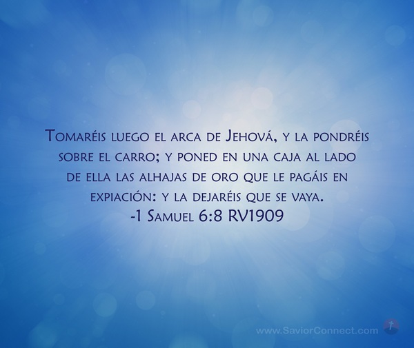 Tomaréis luego el arca de Jehová, y la pondréis sobre el carro; y poned en una caja al lado de ella las alhajas de oro que le pagáis en expiación: y la dejaréis que se vaya. -1 Samuel 6:8 RV1909