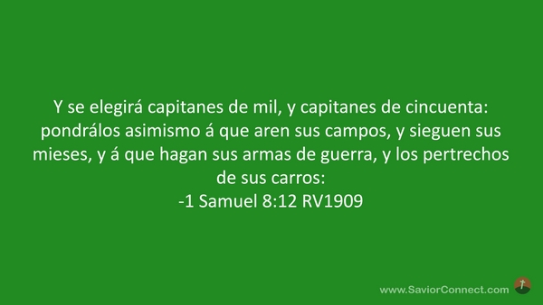 Y se elegirá capitanes de mil, y capitanes de cincuenta: pondrálos asimismo á que aren sus campos, y sieguen sus mieses, y á que hagan sus armas de guerra, y los pertrechos de sus carros: -1 Samuel 8:12 RV1909
