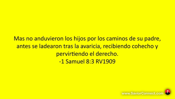 Mas no anduvieron los hijos por los caminos de su padre, antes se ladearon tras la avaricia, recibiendo cohecho y pervirtiendo el derecho. -1 Samuel 8:3 RV1909