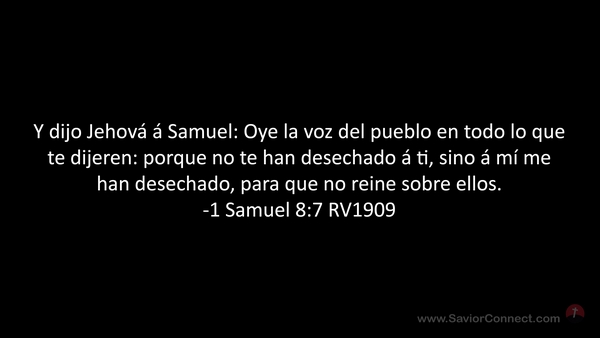 Y dijo Jehová á Samuel: Oye la voz del pueblo en todo lo que te dijeren: porque no te han desechado á ti, sino á mí me han desechado, para que no reine sobre ellos. -1 Samuel 8:7 RV1909