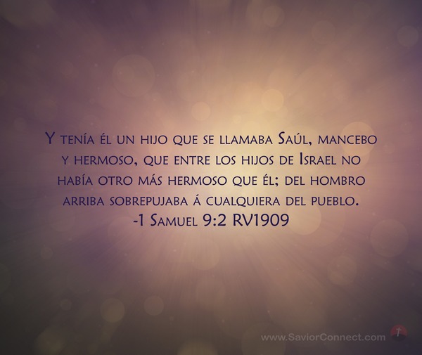 Y tenía él un hijo que se llamaba Saúl, mancebo y hermoso, que entre los hijos de Israel no había otro más hermoso que él; del hombro arriba sobrepujaba á cualquiera del pueblo. -1 Samuel 9:2 RV1909