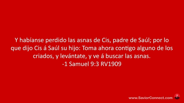 Y habíanse perdido las asnas de Cis, padre de Saúl; por lo que dijo Cis á Saúl su hijo: Toma ahora contigo alguno de los criados, y levántate, y ve á buscar las asnas. -1 Samuel 9:3 RV1909