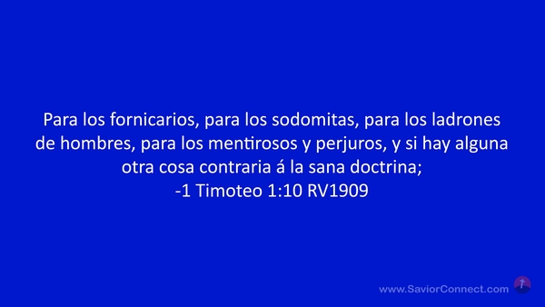 Para los fornicarios, para los sodomitas, para los ladrones de hombres, para los mentirosos y perjuros, y si hay alguna otra cosa contraria á la sana doctrina; -1 Timoteo 1:10 RV1909