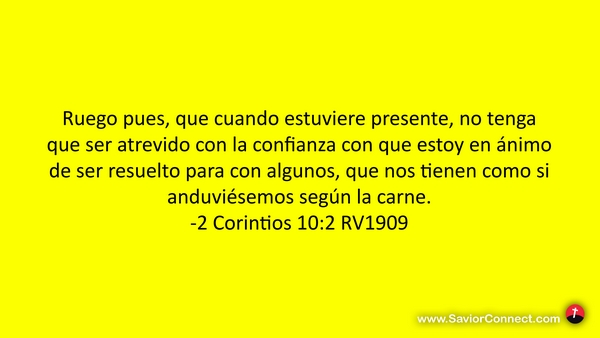 Ruego pues, que cuando estuviere presente, no tenga que ser atrevido con la confianza con que estoy en ánimo de ser resuelto para con algunos, que nos tienen como si anduviésemos según la carne. -2 Corintios 10:2 RV1909