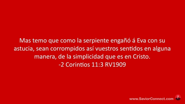 Mas temo que como la serpiente engañó á Eva con su astucia, sean corrompidos así vuestros sentidos en alguna manera, de la simplicidad que es en Cristo. -2 Corintios 11:3 RV1909