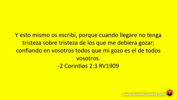 Y esto mismo os escribí, porque cuando llegare no tenga tristeza sobre tristeza de los que me debiera gozar; confiando en vosotros todos que mi gozo es el de todos vosotros. -2 Corintios 2:3 RV1909