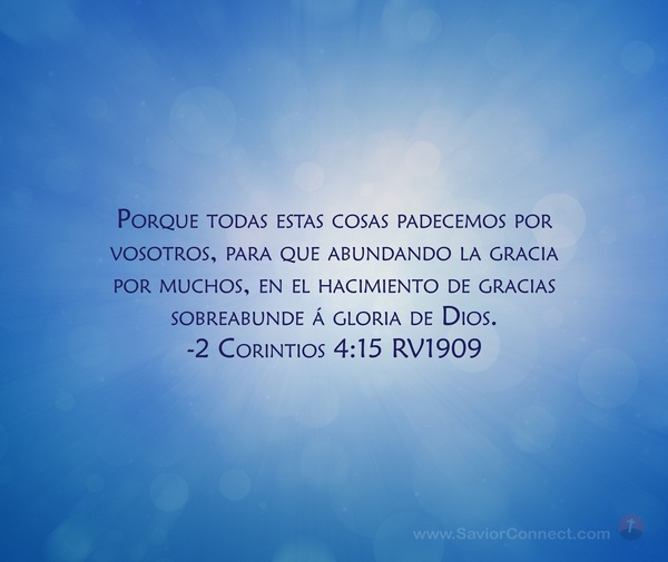 Porque todas estas cosas padecemos por vosotros, para que abundando la gracia por muchos, en el hacimiento de gracias sobreabunde á gloria de Dios. -2 Corintios 4:15 RV1909