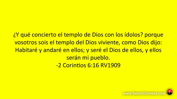 ¿Y qué concierto el templo de Dios con los ídolos? porque vosotros sois el templo del Dios viviente, como Dios dijo: Habitaré y andaré en ellos; y seré el Dios de ellos, y ellos serán mi pueblo. -2 Corintios 6:16 RV1909