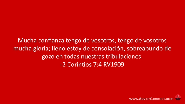 Mucha confianza tengo de vosotros, tengo de vosotros mucha gloria; lleno estoy de consolación, sobreabundo de gozo en todas nuestras tribulaciones. -2 Corintios 7:4 RV1909