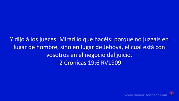 Y dijo á los jueces: Mirad lo que hacéis: porque no juzgáis en lugar de hombre, sino en lugar de Jehová, el cual está con vosotros en el negocio del juicio. -2 Crónicas 19:6 RV1909