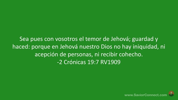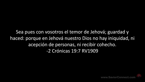 Sea pues con vosotros el temor de Jehová; guardad y haced: porque en Jehová nuestro Dios no hay iniquidad, ni acepción de personas, ni recibir cohecho. -2 Crónicas 19:7 RV1909