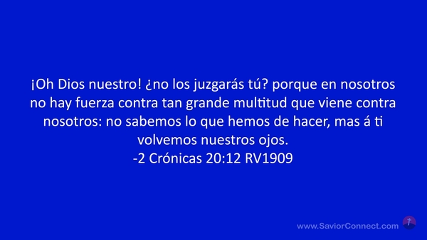 ¡Oh Dios nuestro! ¿no los juzgarás tú? porque en nosotros no hay fuerza contra tan grande multitud que viene contra nosotros: no sabemos lo que hemos de hacer, mas á ti volvemos nuestros ojos. -2 Crónicas 20:12 RV1909