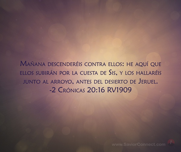 Mañana descenderéis contra ellos: he aquí que ellos subirán por la cuesta de Sis, y los hallaréis junto al arroyo, antes del desierto de Jeruel. -2 Crónicas 20:16 RV1909