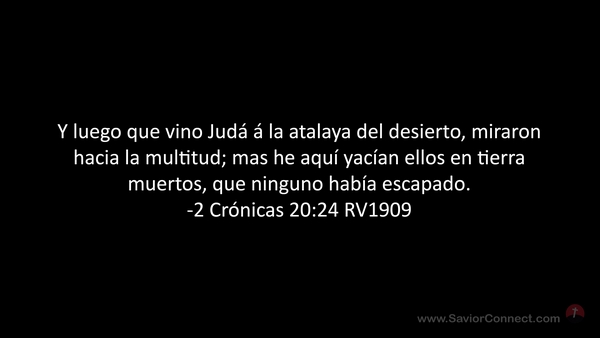 Y luego que vino Judá á la atalaya del desierto, miraron hacia la multitud; mas he aquí yacían ellos en tierra muertos, que ninguno había escapado. -2 Crónicas 20:24 RV1909