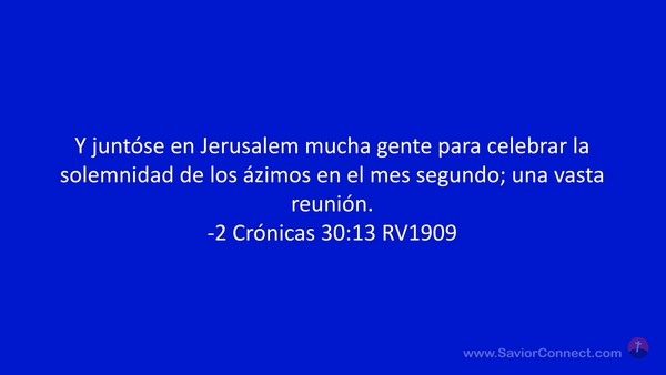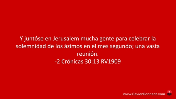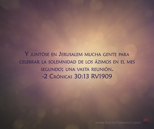 Y juntóse en Jerusalem mucha gente para celebrar la solemnidad de los ázimos en el mes segundo; una vasta reunión. -2 Crónicas 30:13 RV1909