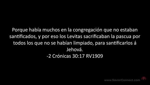 Porque había muchos en la congregación que no estaban santificados, y por eso los Levitas sacrificaban la pascua por todos los que no se habían limpiado, para santificarlos á Jehová. -2 Crónicas 30:17 RV1909