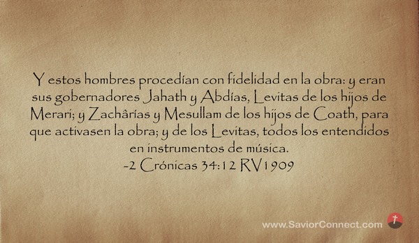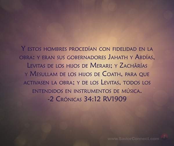 Y estos hombres procedían con fidelidad en la obra: y eran sus gobernadores Jahath y Abdías, Levitas de los hijos de Merari; y Zachârías y Mesullam de los hijos de Coath, para que activasen la obra; y de los Levitas, todos los entendidos en instrumentos de música. -2 Crónicas 34:12 RV1909