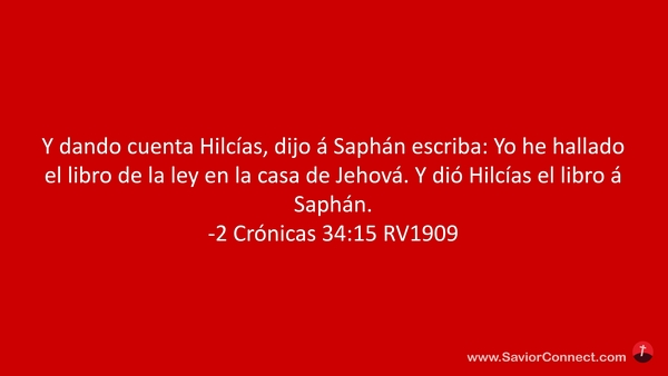 Y dando cuenta Hilcías, dijo á Saphán escriba: Yo he hallado el libro de la ley en la casa de Jehová. Y dió Hilcías el libro á Saphán. -2 Crónicas 34:15 RV1909