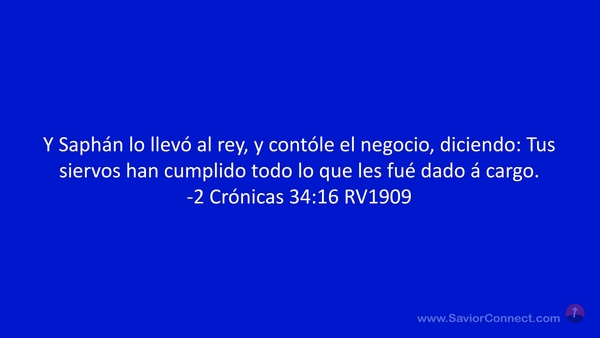 Y Saphán lo llevó al rey, y contóle el negocio, diciendo: Tus siervos han cumplido todo lo que les fué dado á cargo. -2 Crónicas 34:16 RV1909