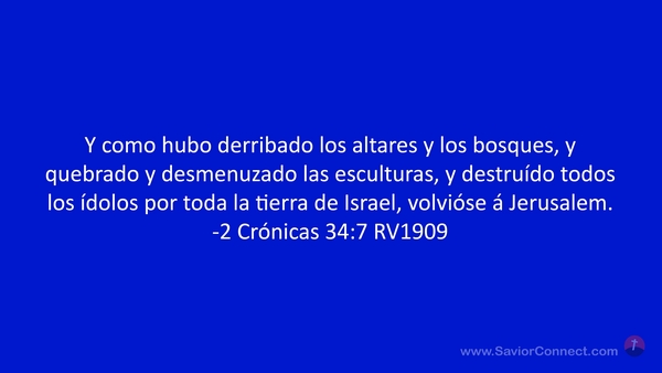 Y como hubo derribado los altares y los bosques, y quebrado y desmenuzado las esculturas, y destruído todos los ídolos por toda la tierra de Israel, volvióse á Jerusalem. -2 Crónicas 34:7 RV1909