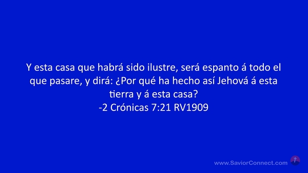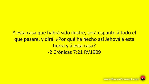 Y esta casa que habrá sido ilustre, será espanto á todo el que pasare, y dirá: ¿Por qué ha hecho así Jehová á esta tierra y á esta casa? -2 Crónicas 7:21 RV1909