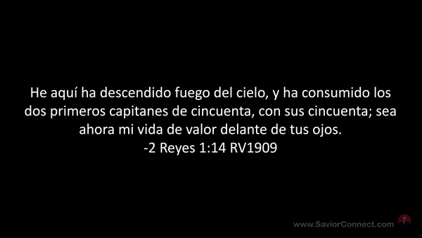 He aquí ha descendido fuego del cielo, y ha consumido los dos primeros capitanes de cincuenta, con sus cincuenta; sea ahora mi vida de valor delante de tus ojos. -2 Reyes 1:14 RV1909
