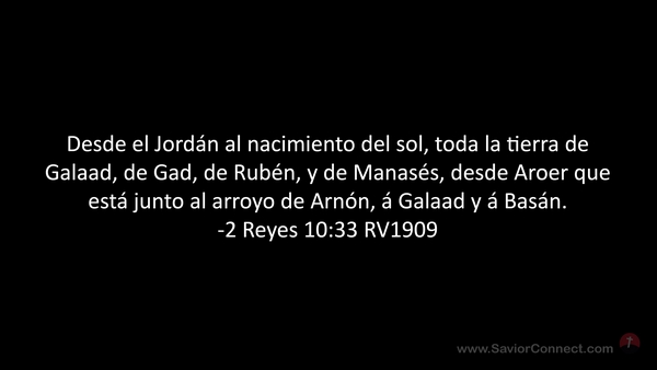 Desde el Jordán al nacimiento del sol, toda la tierra de Galaad, de Gad, de Rubén, y de Manasés, desde Aroer que está junto al arroyo de Arnón, á Galaad y á Basán. -2 Reyes 10:33 RV1909