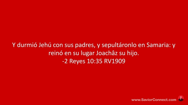 Y durmió Jehú con sus padres, y sepultáronlo en Samaria: y reinó en su lugar Joachâz su hijo. -2 Reyes 10:35 RV1909