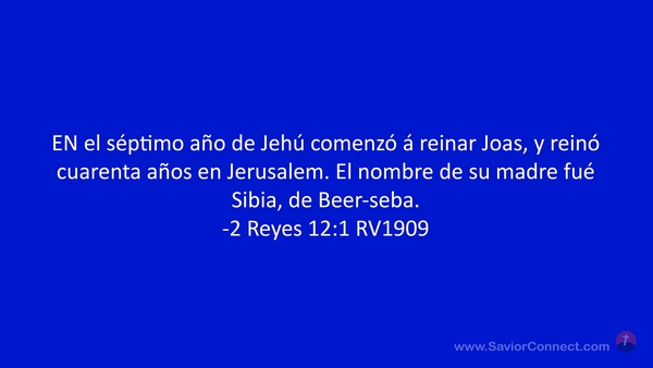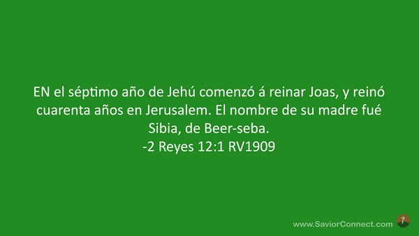 EN el séptimo año de Jehú comenzó á reinar Joas, y reinó cuarenta años en Jerusalem. El nombre de su madre fué Sibia, de Beer-seba. -2 Reyes 12:1 RV1909
