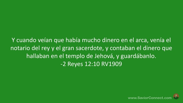 Y cuando veían que había mucho dinero en el arca, venía el notario del rey y el gran sacerdote, y contaban el dinero que hallaban en el templo de Jehová, y guardábanlo. -2 Reyes 12:10 RV1909