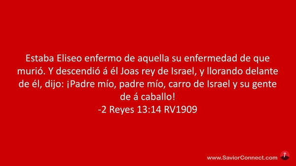 Estaba Eliseo enfermo de aquella su enfermedad de que murió. Y descendió á él Joas rey de Israel, y llorando delante de él, dijo: ¡Padre mío, padre mío, carro de Israel y su gente de á caballo! -2 Reyes 13:14 RV1909