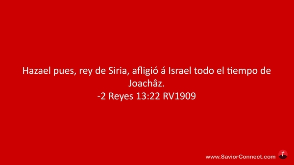 Hazael pues, rey de Siria, afligió á Israel todo el tiempo de Joachâz. -2 Reyes 13:22 RV1909